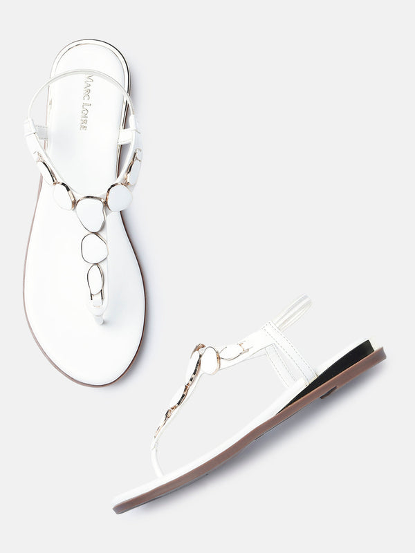 Marc Loire Womens White Backstrap Solid Flats Sandals